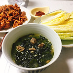 안녕하세요 친절한하나씨입니다 오늘은 생일이면 무조건 무조건이야~ 소고기 미역국을 끓여봤어요 그것만 먹긴 아쉬우니 제육볶음도 조금하고 알배기 쌈도 조금 먹구요 떡집에서 시루떡도 한 팩 사왔어요 혼자라고 생일상 패스하면 서럽자나요 우리 잘 챙겨 먹어요!!!! 아주 아주 쉬워서 금방 넘어갈테니 잘 따라오세요~ 재료 국거리용 소고기 (100g) 물에 불린 미역 (2~3인분-말린상태로 10g이내) 다진마늘 1큰술 참기름 1큰술 국간장 1큰술 소금 약간 물 3~4컵 먼저 달궈진 팬에 참기름을 두르세요 참기름을 두른 후 간마늘을 넣고 볶아요 간마늘을 살짝볶다가 향이 나기 시작하면 소고기를 넣고 볶습니다 소고기의 겉이 익도로 볶아요 요리조리~ 고기가 어느정도 겉이 익으면 불려둔 미역을 체에 걸러두었다가 자른미역이 아닐..